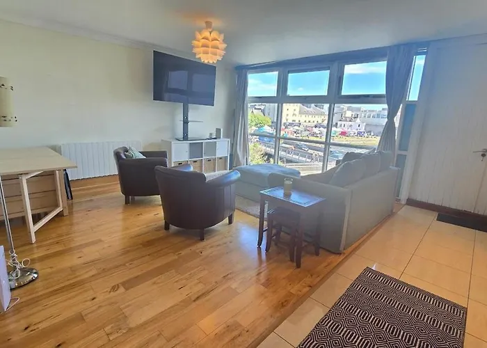 クラダーから徒歩で5分くらいの場所に位置するベッドルーム2室のGreat 2 bed, 2 bath apartment, River & city views ゴールウェイからは、海の景色を眺めることができます。